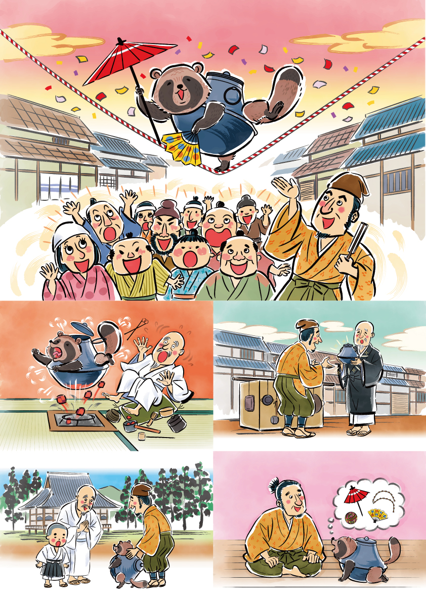 2023年初冬頃にweb紙芝居のイラストを描かせていただきました。日本のむかし話をネット上でオーストラリアの子供達に英語で楽しんでもらうシリーズで「分福茶釜」を担当させていただきました。