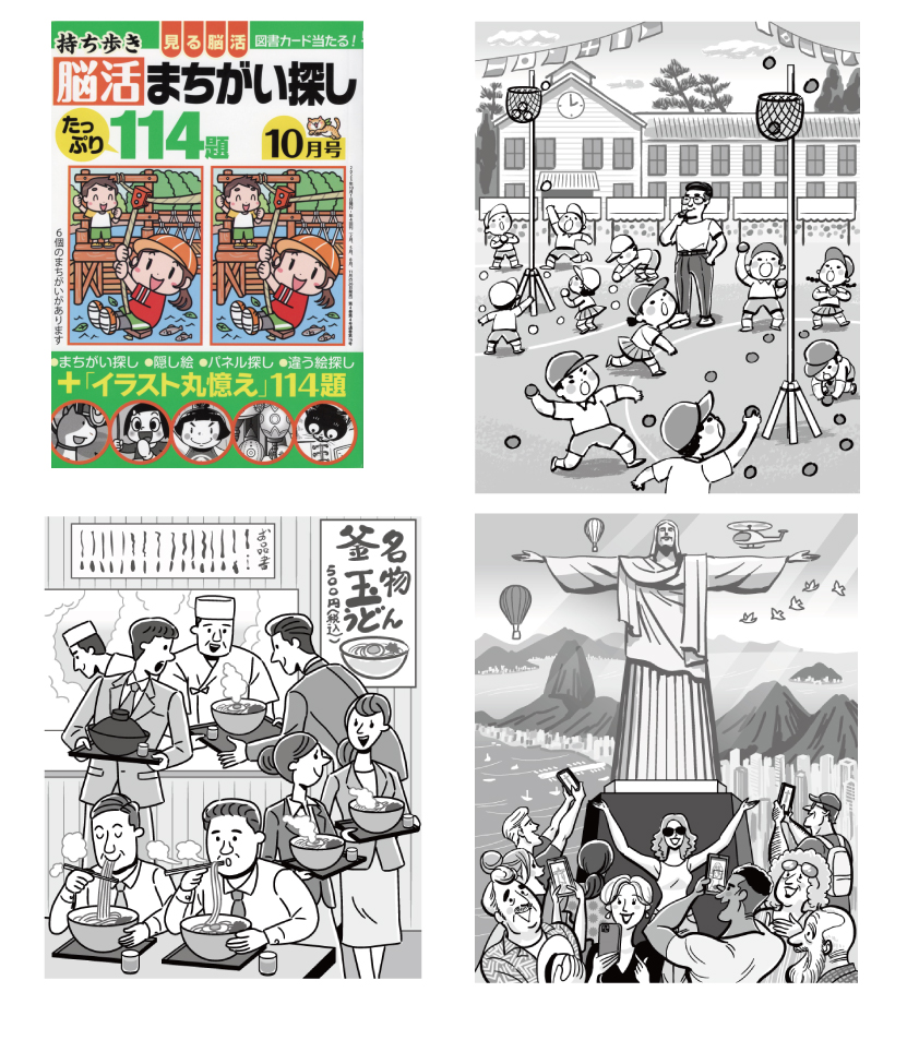 2023年秋にイラストを担当させていただいた書籍が発売されました。昭和の運動会、昼時の社員食堂、ブラジルのリオ・デ・ジャネイロを描いた間違い探しイラストを描かせていただきました。
